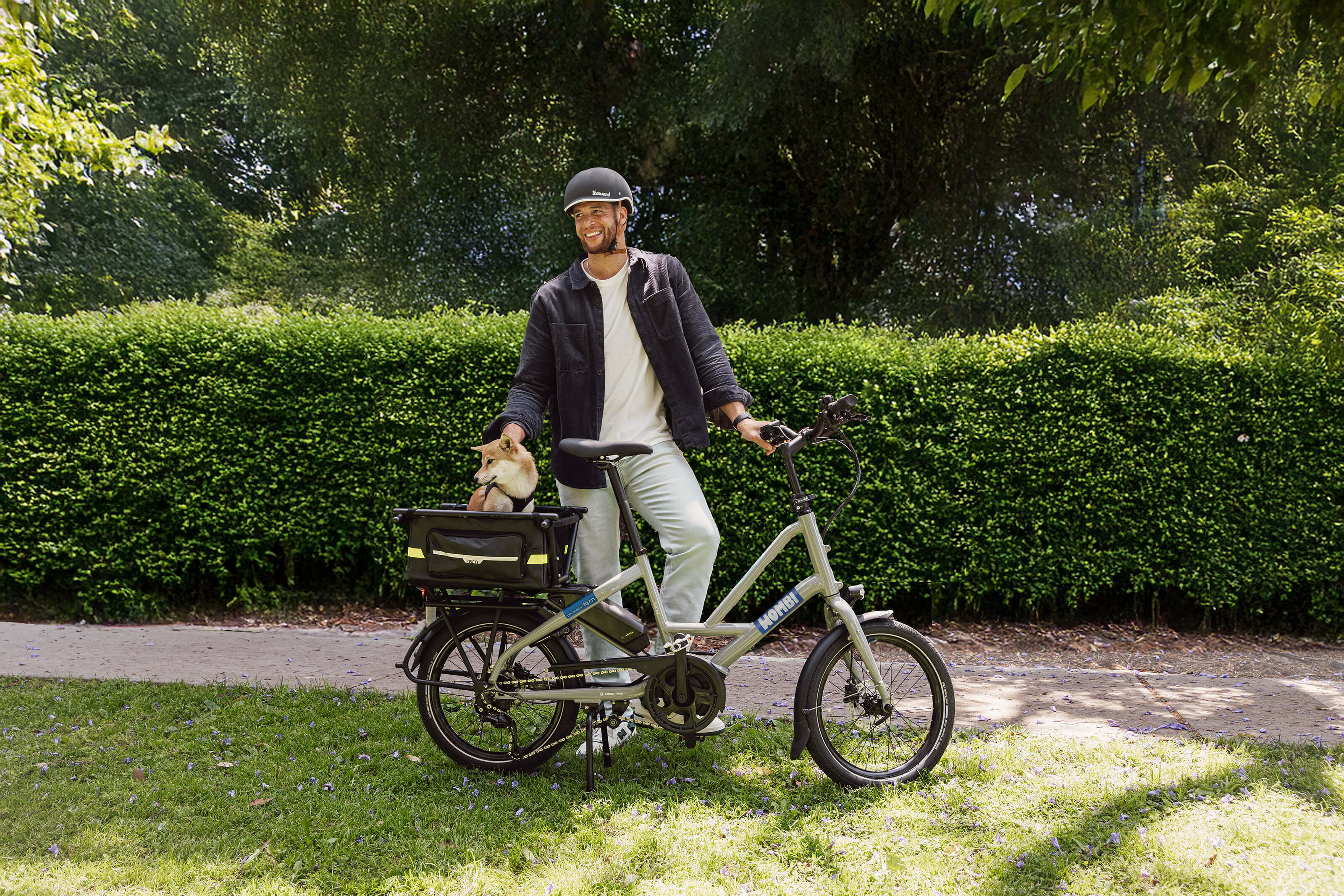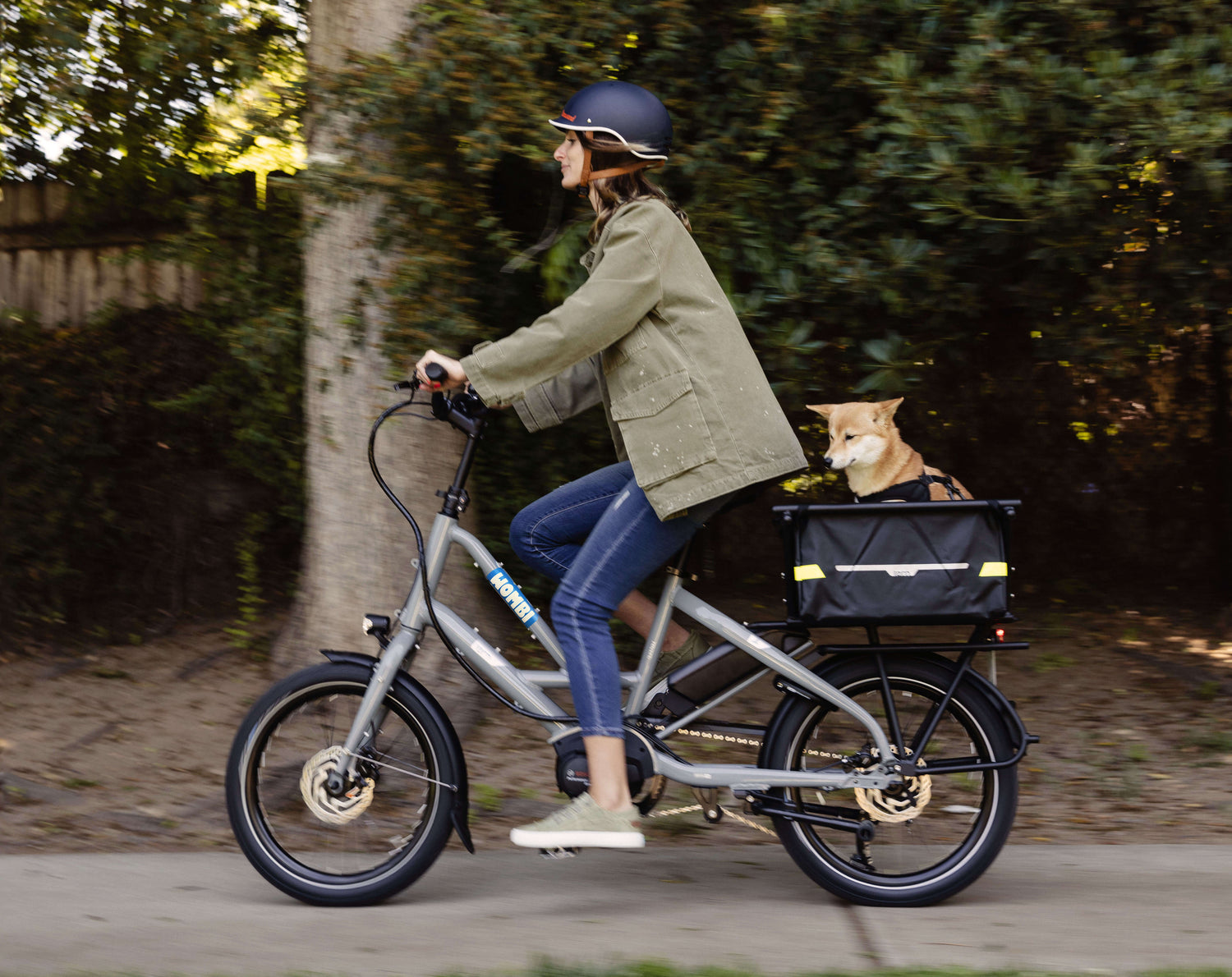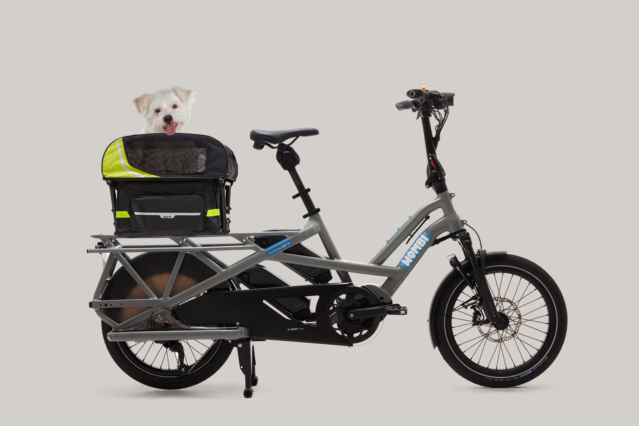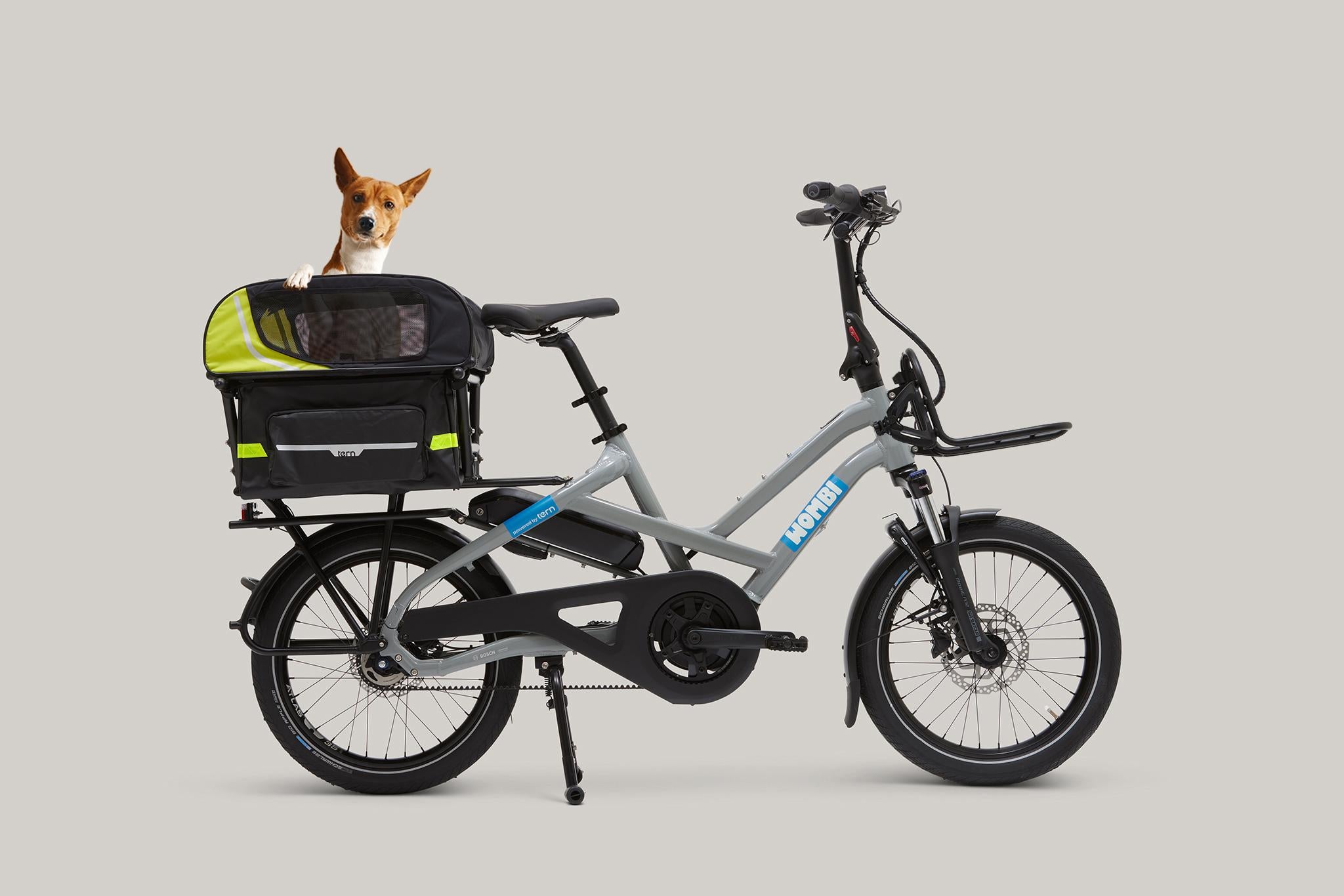Our electric bikes make it easy for adults who don’t want to leave their pets at home to ride to local parks, the office, or shops and enjoy the fresh air together. You can choose between three different-sized bikes, with varying weight limits or speeds, swap out different accessories as needed, and avoid the hassle of maintaining a car, driving in rush hour, or finding parking. When using our e-bikes with a pet carrier, you can do all of those things while with your best friend. The Tern dog carrier doubles as extra storage for traveling to work or grocery shopping.