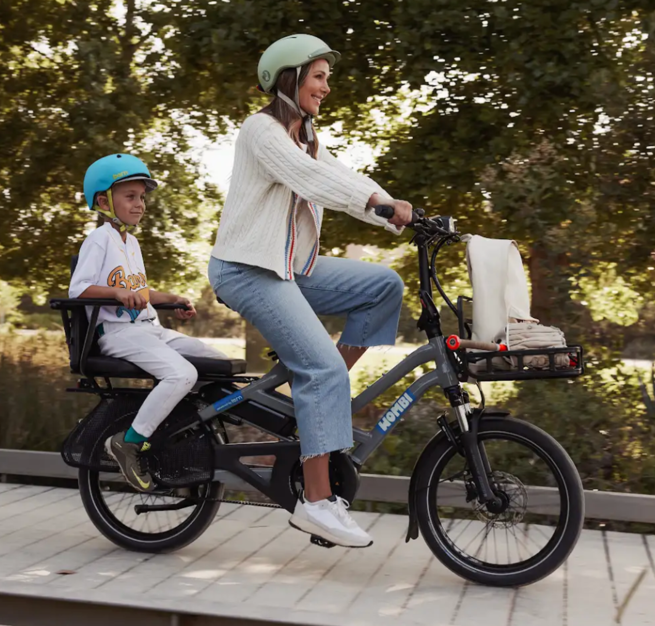 Each of the Tern bikes is fully kitted out with almost everything you would need for your ride: front and rear lights, a heavy duty rack on the back, a lock, an alarm (fancy!) and, most importantly, theft and damage coverage. The only thing you’ll need to provide is a helmet—or you can buy one from us.. Wombi also offers a range of accessories you can add on to suit your use, like child seats, panniers, or a rack for the front.